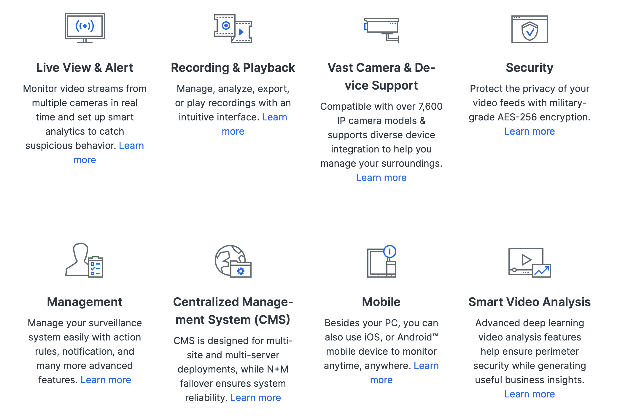 Jedan od najvećih značajki ove platforme je i deep learning tehnologija koja omogućava detekciju, lica, osoba te automobila kao i neovlaštene ulaske u zabranjene prostore.