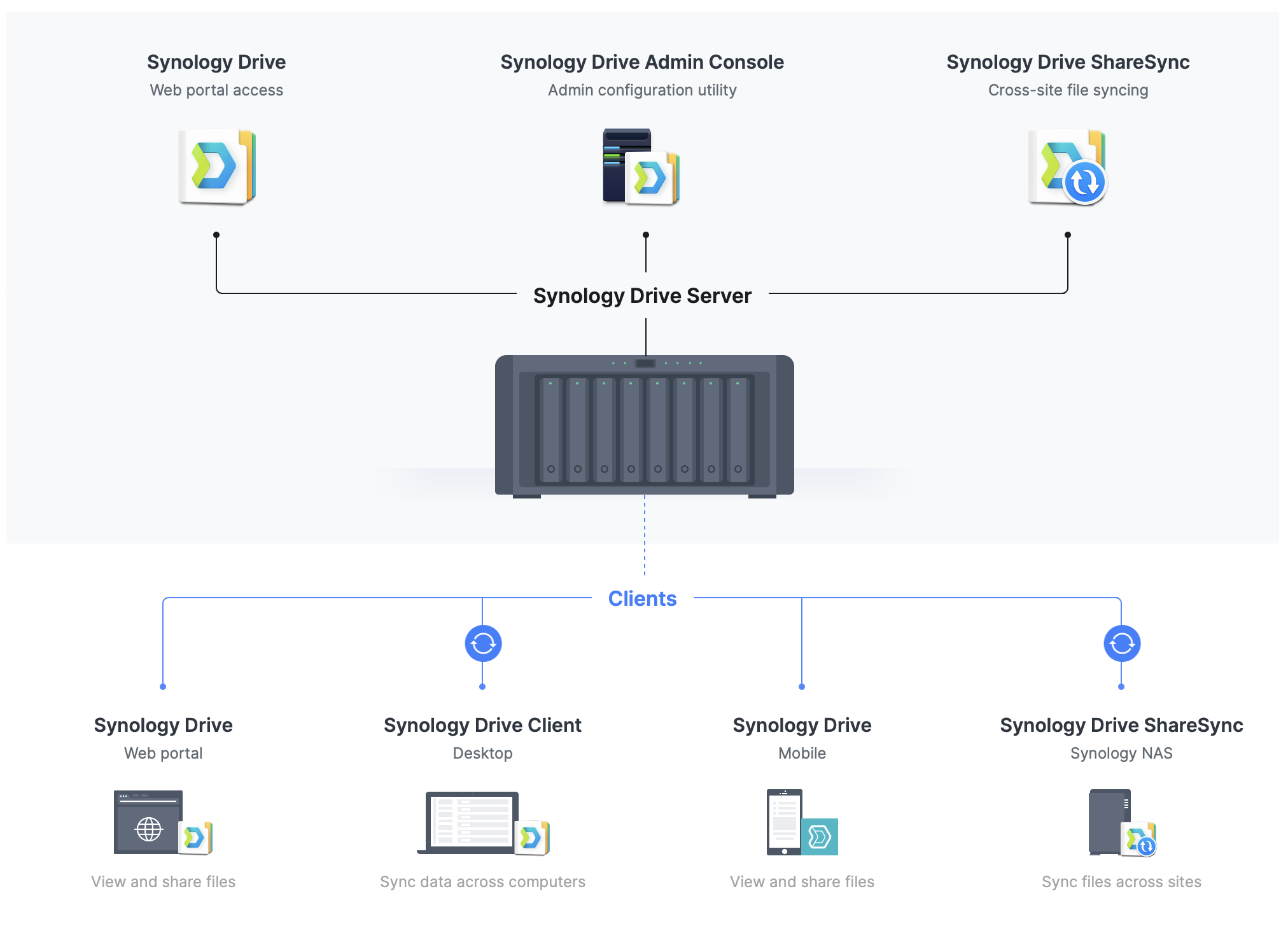Drive s druge strane kao platforma otvara vam vrata za kolaboraciju u realnom vremenu (preko Synology Office paketa), pristup podacima sa bilo kojeg uređaja ili operativnog sustava danas, kao i sinkronizaciju sa drugim udaljenim NAS uređajem kao dio backup ili kolaboracijskog plana.