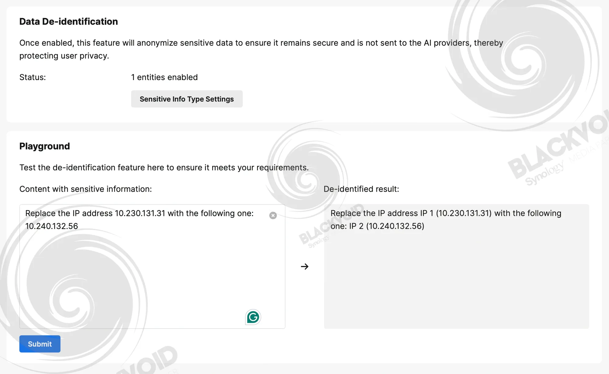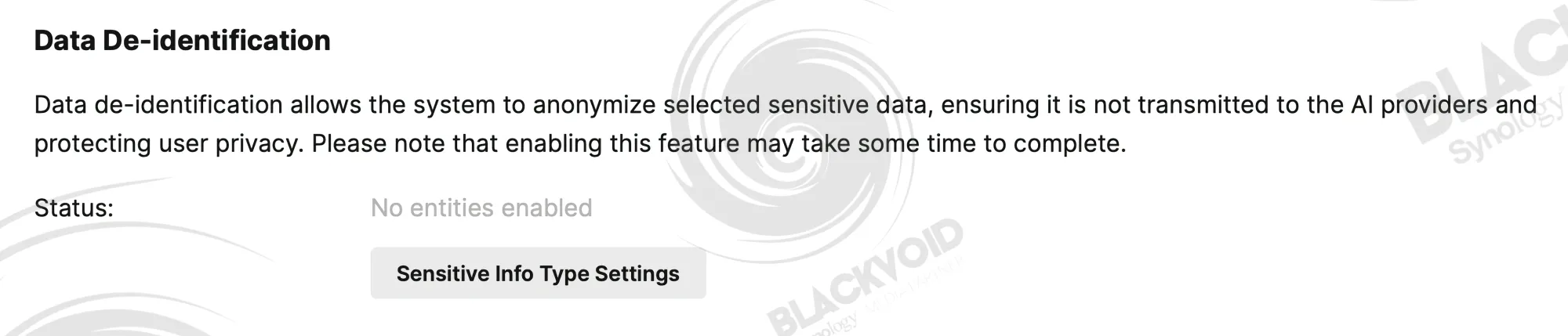 De-identifikacija podataka omogućuje sustavu anonimiziranje odabranih osjetljivih podataka, osiguravajući da se ti podaci ne šalju pružateljima AI-ja te štiteći privatnost korisnika.