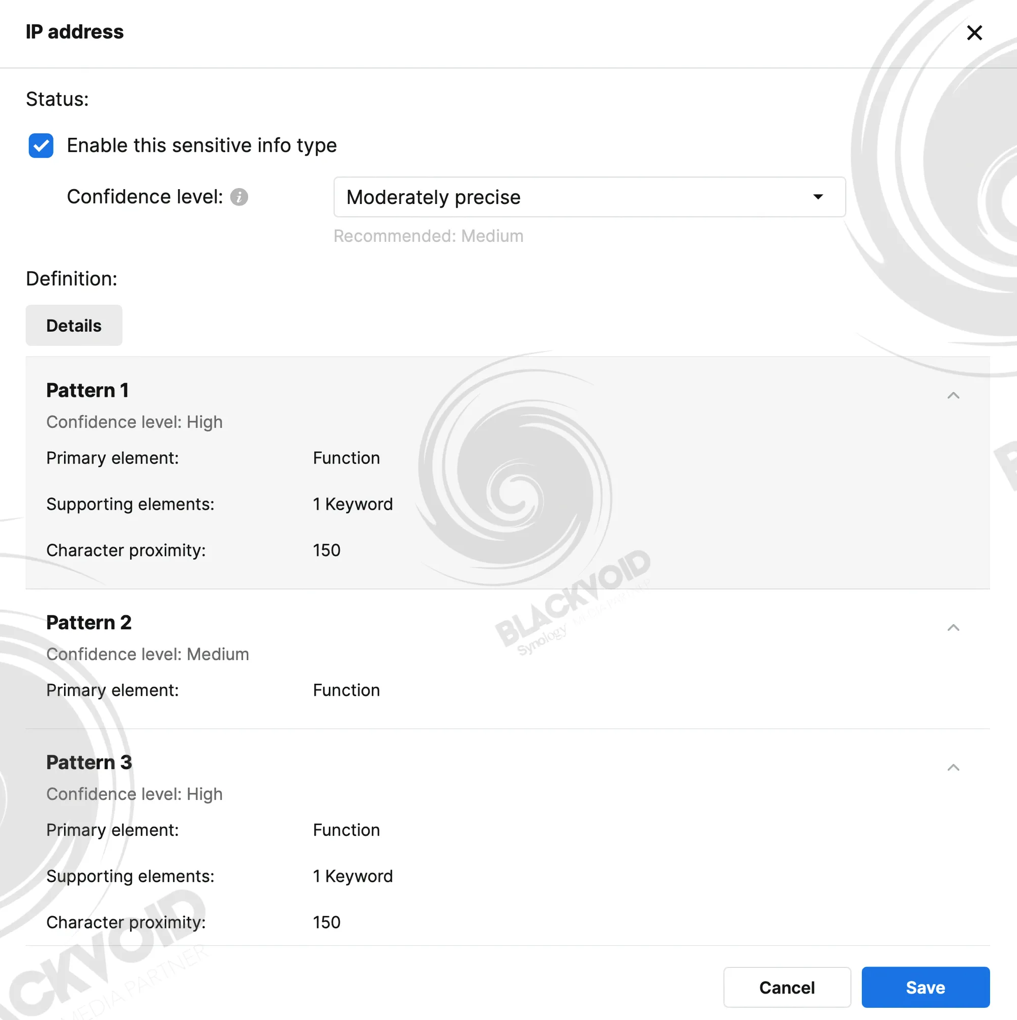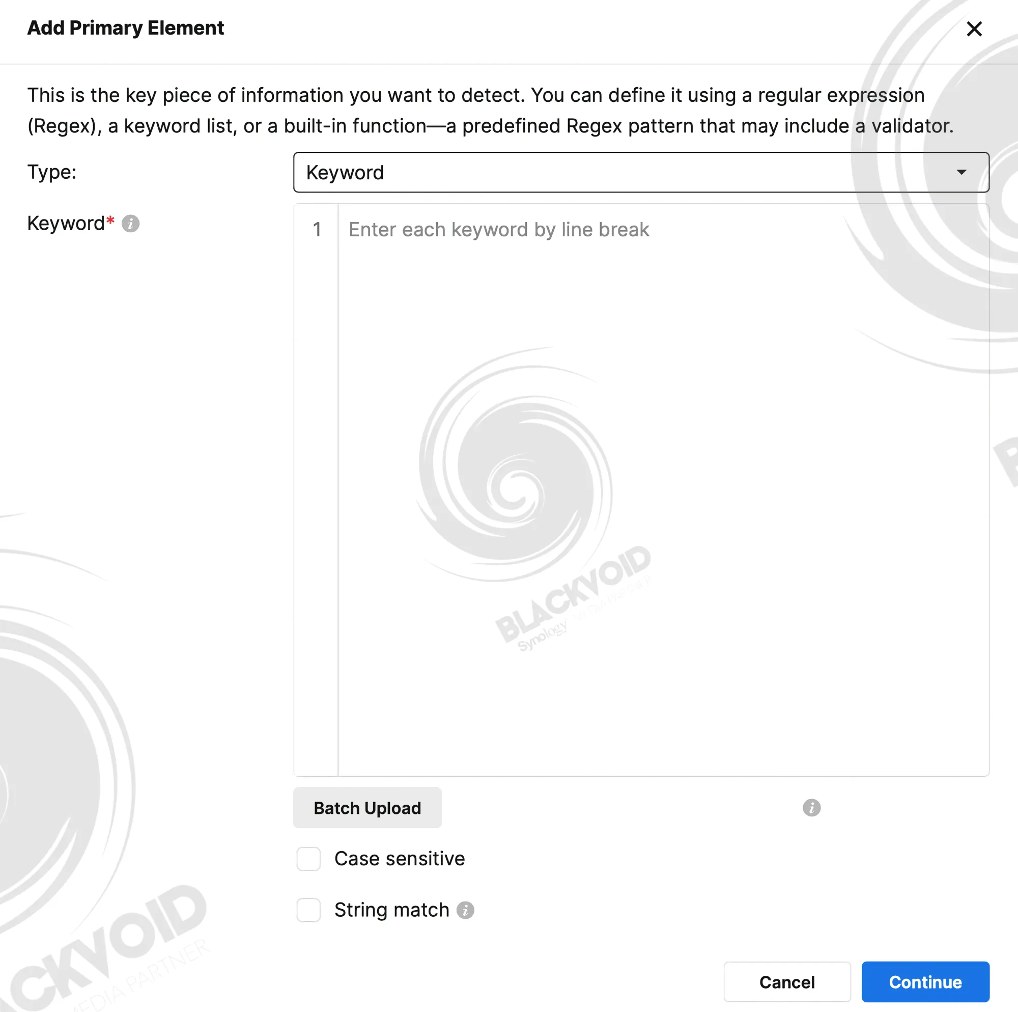 Korisnici će moći odrediti razinu pouzdanosti i definirati obrasce s njihovim primarnim i pomoćnim elementima, bez obzira na korišteni jezik. Primarni detekcijski element koji treba biti maskiran može se konfigurirati pomoću Regexa, ključnih riječi ili funkcije — na primjer, unaprijed definirani obrazac Regexa koji može uključivati provjeru valjanosti. Uz to, ključne riječi mogu se uvesti putem TXT ili CSV datoteke koja sadrži do 2 048 pojedinačnih riječi.