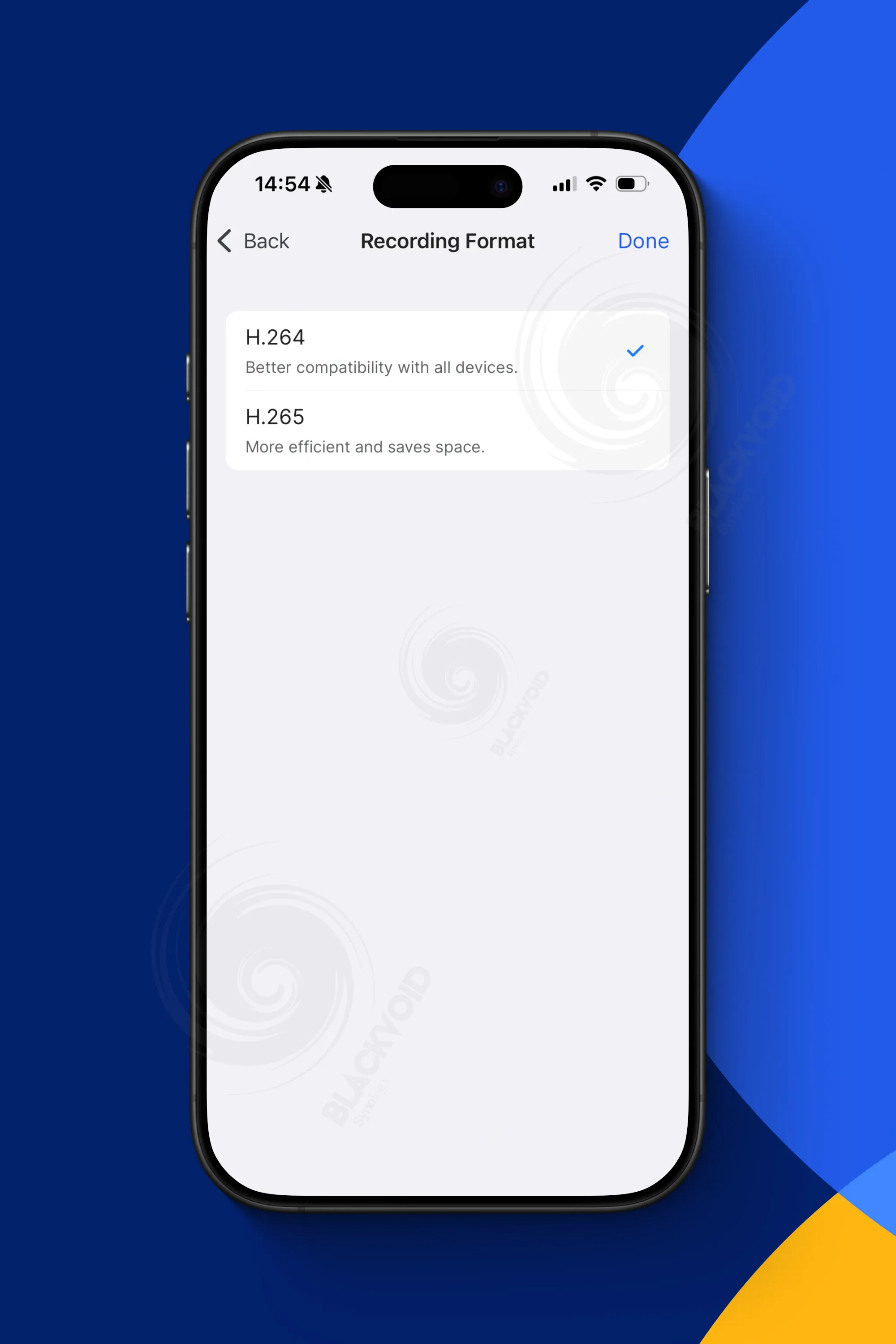 Korisnici će se prvenstveno fokusirati na postavke snimanja, slike i formata, koje izravno utječu na veličinu snimki i korištenje prostora za pohranu. Dok aplikacija podržava varijabilni bitrate, isključivanje te opcije radi maksimalne kvalitete i postavljanje kvalitete slike na maksimum, rezultirat će znatno većim datotekama.