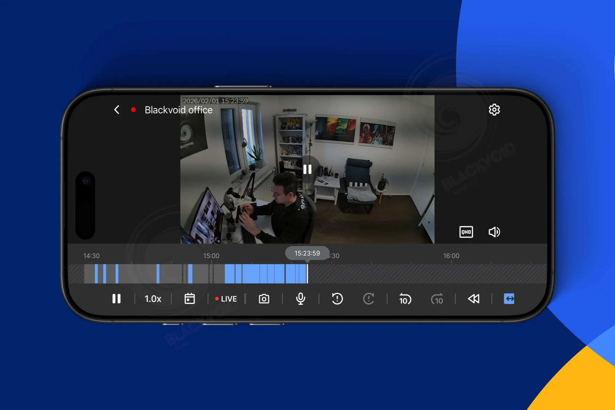 Aplikacija podržava i pejzažni i portretni način rada, uključujući opciju višestrukog pregleda, omogućujući jednostavan pristup svim bitnim postavkama. Neposredno ispod videouratka nalazi se poznati vremenski okvir s raznim kontrolama, poput reprodukcije/pauze, obostrane audio komunikacije, prečica za pokretanje događaja i drugih funkcija.