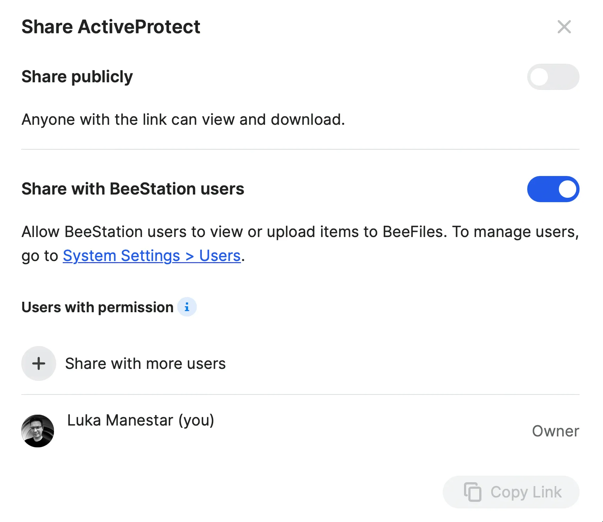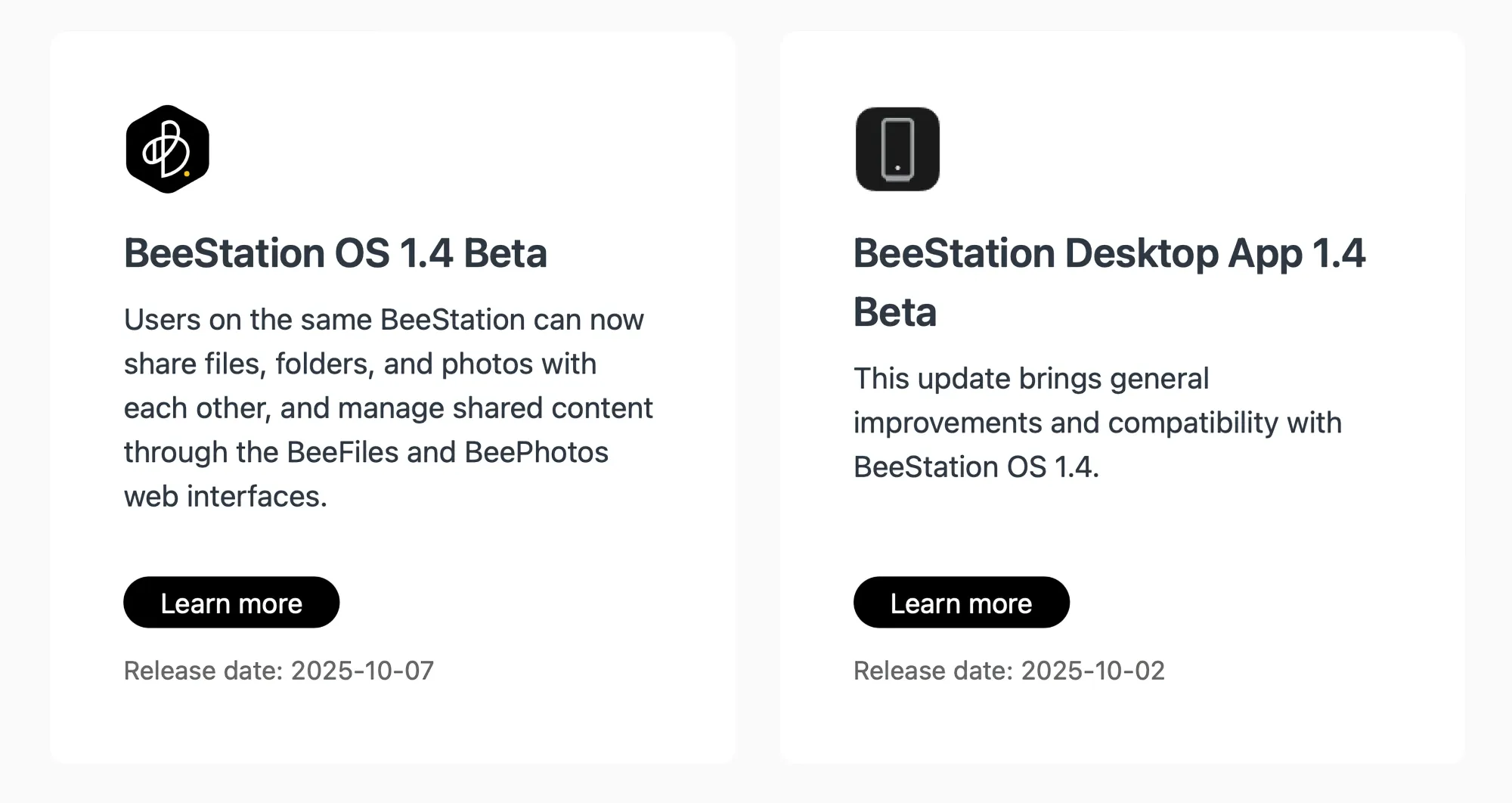 - Added support for sharing with other BeeStation users, allowing files and folders to be shared with role-based permissions for viewing, downloading, and uploading. (This feature is available in the web version during beta. App support is coming soon.)