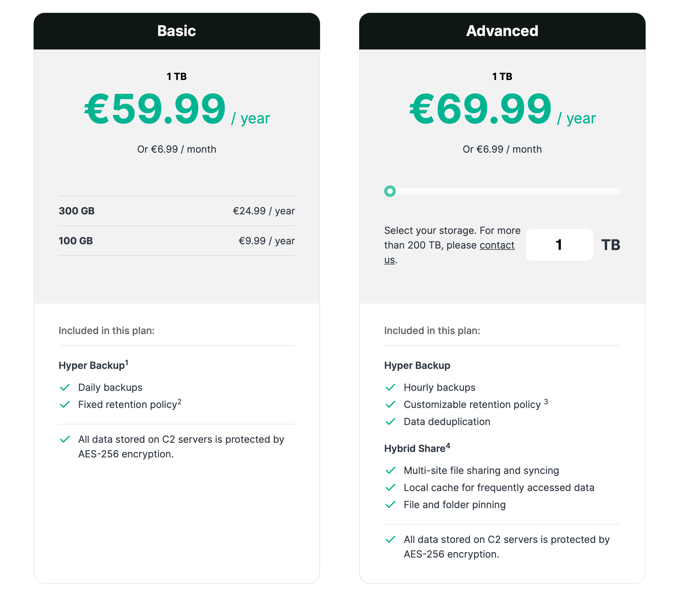 C2 Backup trenutno dolazi u dva cjenovna razreda sa identičnim setom mogućnosti