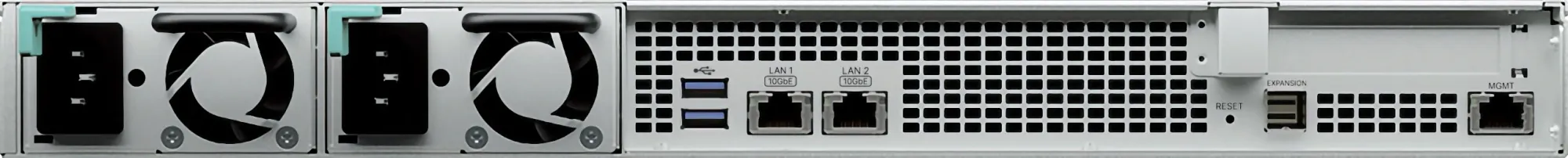 Povećanje snage napajanja također podržava nadograđene mrežne mogućnosti. Prethodna četiri 1 GbE priključaka (4×1 GbE) zamijenjena su s dva 10 GbE RJ45 utora (2×10 GbE, 10GBASE‑T), a jedinica također ima i posvećeni 1 GbE upravljački priključak, kako se i očekuje kod XS+ modela.
